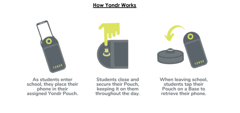 When learners join our school they are given with a Yondr pouch. These phone-sized pouches have a strong magnetic lock which, once closed, cannot be opened again without a specially designed unlocking magnet.