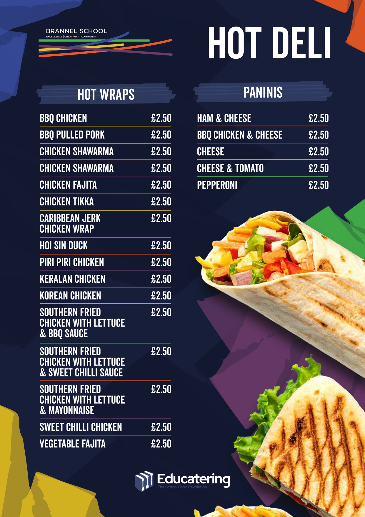 - hot pasty, panini or burrito plus yoghurt or fresh fruit